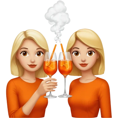 blonde and brunette girls clinking aperol spritz glasses together emoji