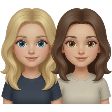 2 girls. Blonde and brunette, straight hair long, beautiful emoji