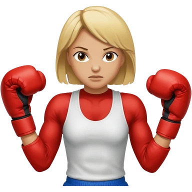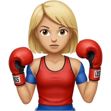 Blonde short hair boxer guy in black tank top holding hands in boxer stance. Wearing dark green boxer gloves emoji