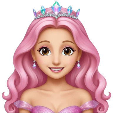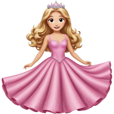 Ariana Grande as Galinda from Wicked. blond hair, a crown and big pink dress emoji