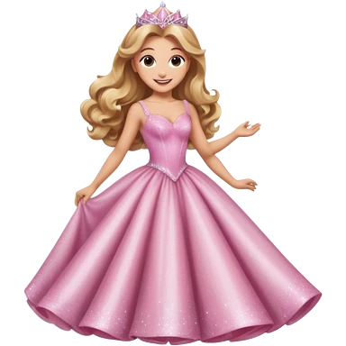 glinda the good witch from wicked movie (ariana grande) blonde hair, beautiful, big silver thin tiara, star wand, pink gown emoji