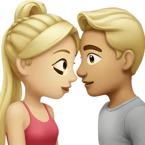 Make a blonde asian girl with a guy with a pony tail kissing emoji