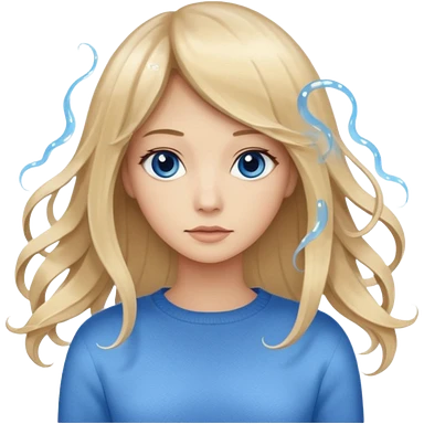 Blonde balayage long hair women blue sweater, blue eyes emoji