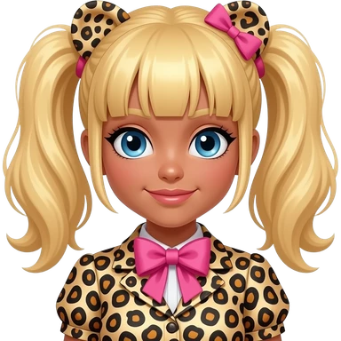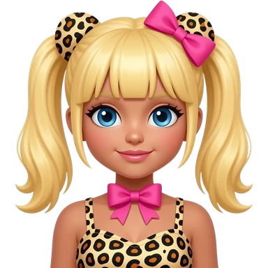 Make a gyaru girl!(Tanner skin and blonde hair with blue eyes and cheeta print clothes with a pink bow) emoji