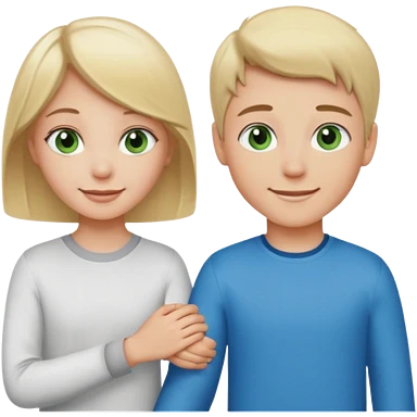 blonde blue eyed boy smiling with pale brunette green eyed girl emoji