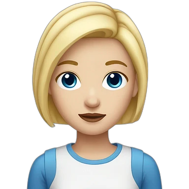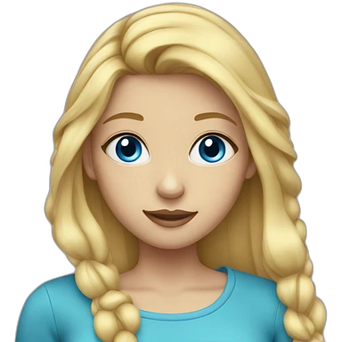 Emoji teenage girl, ash darker almost brown blonde hair, blue eyes, black shirt, hair a little longer than over shoulders, red pinkish lips, blue grey eyes emoji