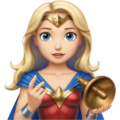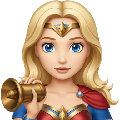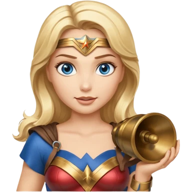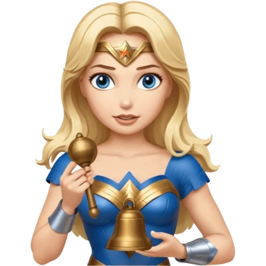 Blonde blue eyes Wonder Woman holding bell and baton emoji | AI Emoji Generator