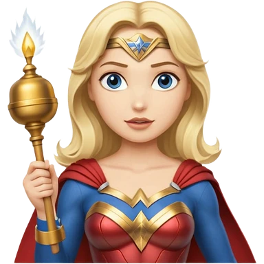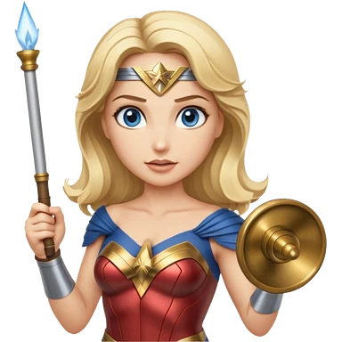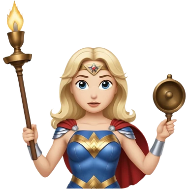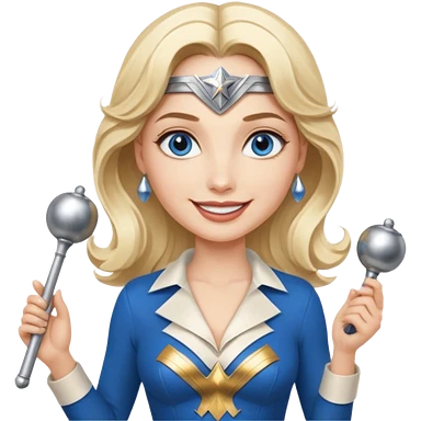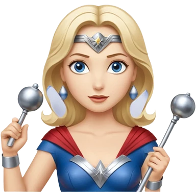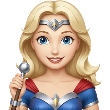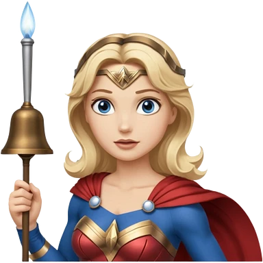 Blonde blue eyes Wonder Woman holding bell and baton emoji | AI Emoji Generator