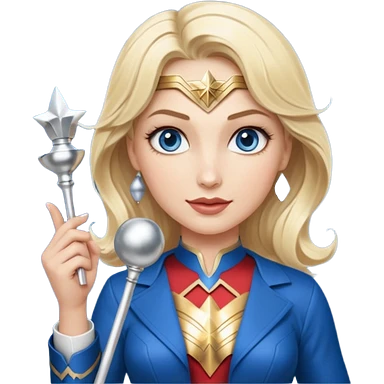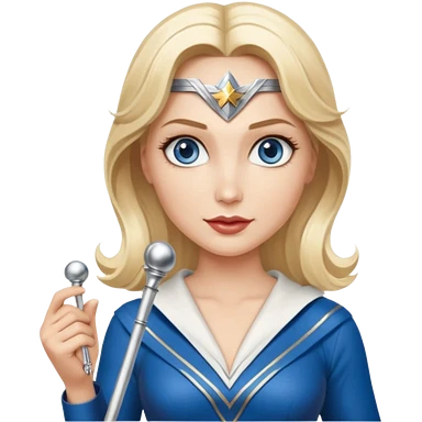 Blonde blue eyes Wonder Woman holding bell and short white orchestra conductor’s baton emoji