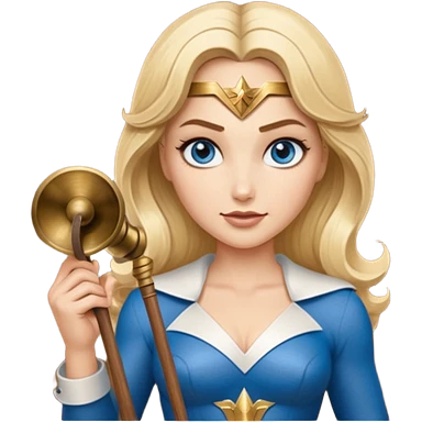 Blonde blue eyes Wonder Woman holding bell and baton emoji