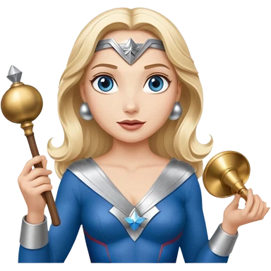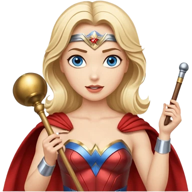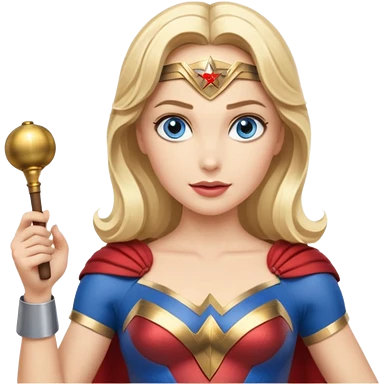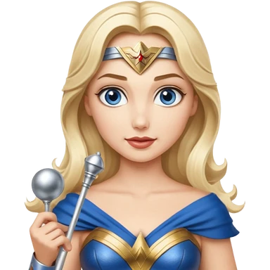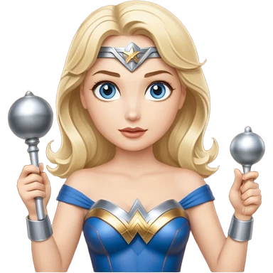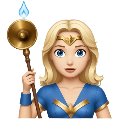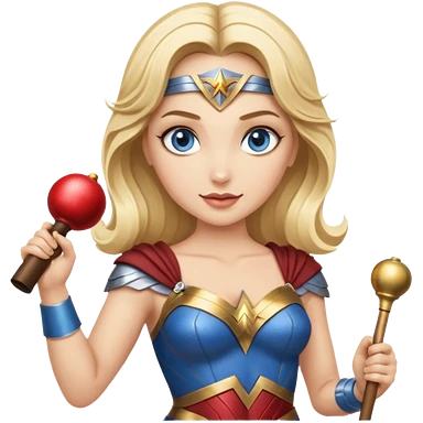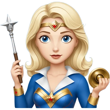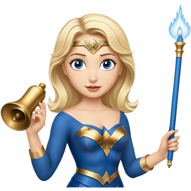 Blonde blue eyes Wonder Woman holding bell and short white baton emoji