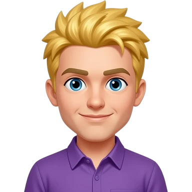 A character with spiky blonde hair, wearing a purple shirt emoji