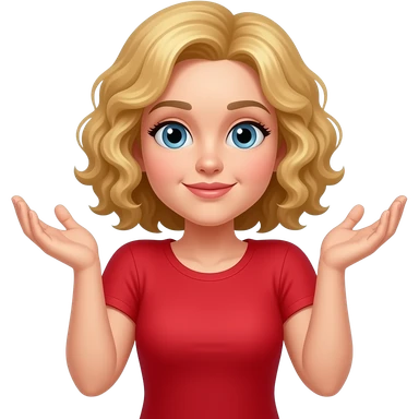 blonde curly bob shrugging shoulders in red shirt emoji