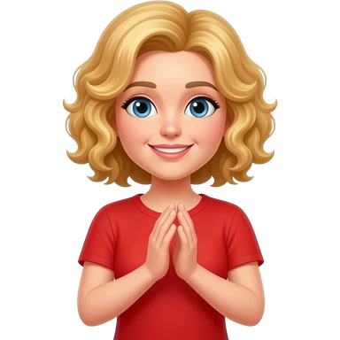 blonde curly bob praying with both hands in red shirt emoji