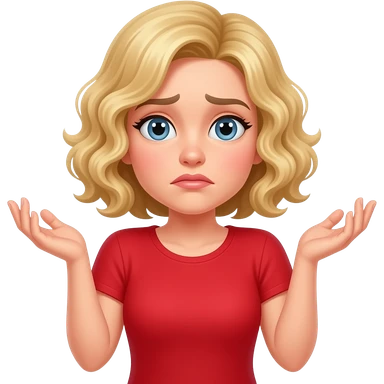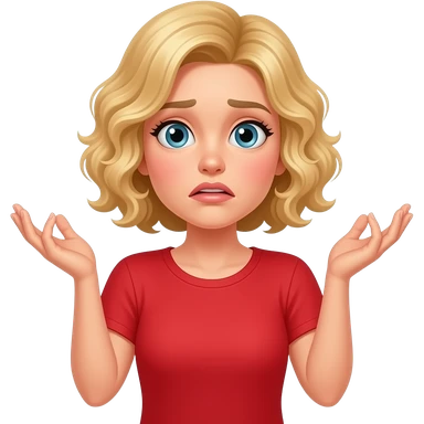 blonde curly bob shrugging shoulders with both hands I don't know looking confusedin \red shirt emoji