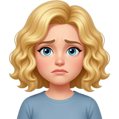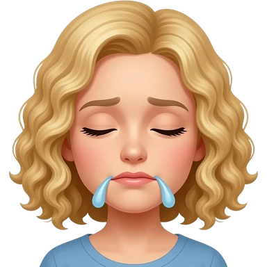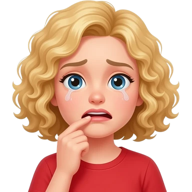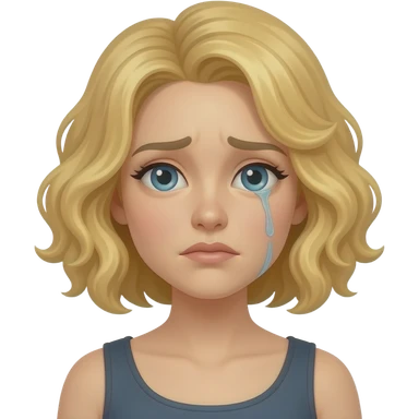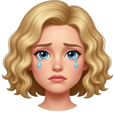 blonde curly bob looking sad with tear emoji