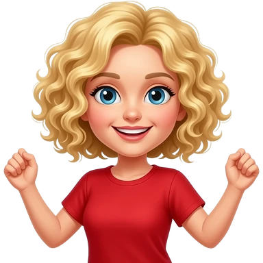 blonde curly bob thumbs up in red shirt emoji