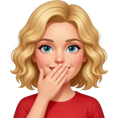 blonde curly bob covering mouth in red shirt emoji