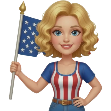 blonde curly bob holding american flag proudly emoji