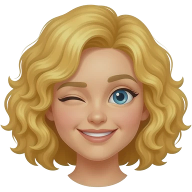 blonde curly bob winking with one eye emoji