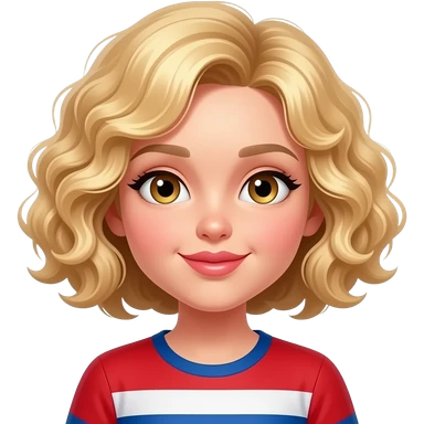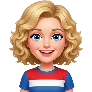 blonde curly bob kissing face with smiling eyes in red, white and blue shirt emoji