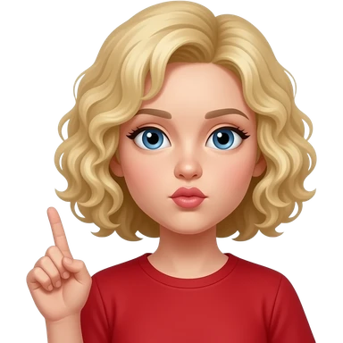 blonde curly bob with lips pursed in an o with finger in the air in a red shirt emoji