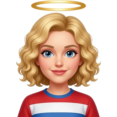blonde curly bob with halo on top of head in red, white and blue shirt emoji