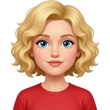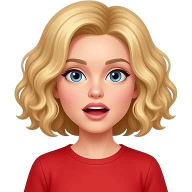 blonde curly bob with lips quivering in a red shirt emoji