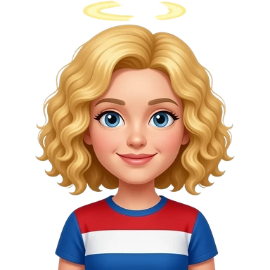 blonde curly bob with full halo on top of head in red, white and blue shirt emoji