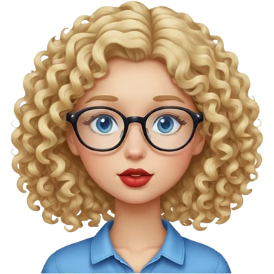 Blonde curly hair girl with glasses and blue eyes kissing face emoji