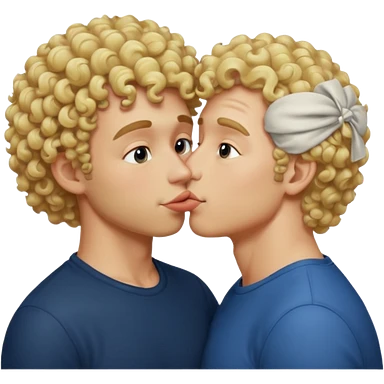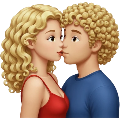 Blonde curly guy kissing on brown haired girl emoji | AI Emoji Generator