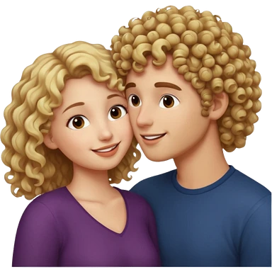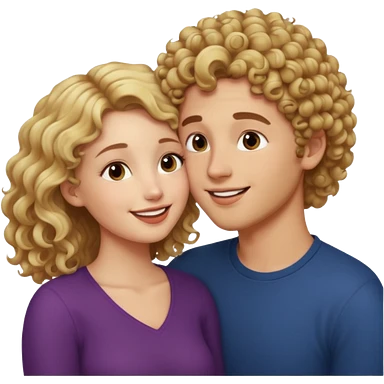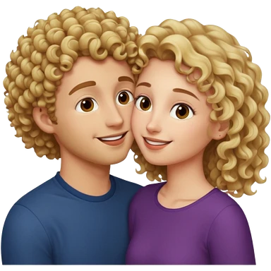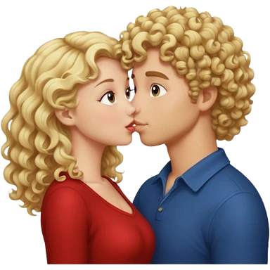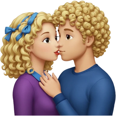 Brown Curly hair girl kissing tall blonde haired boy emoji