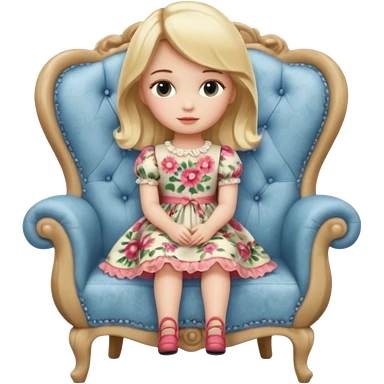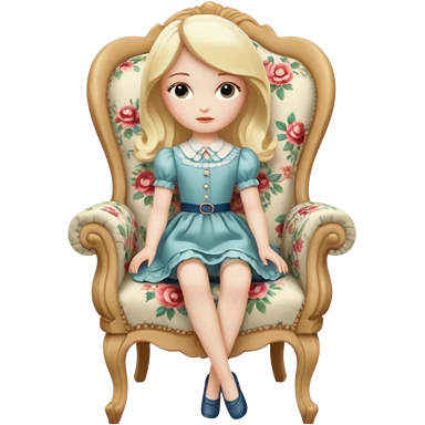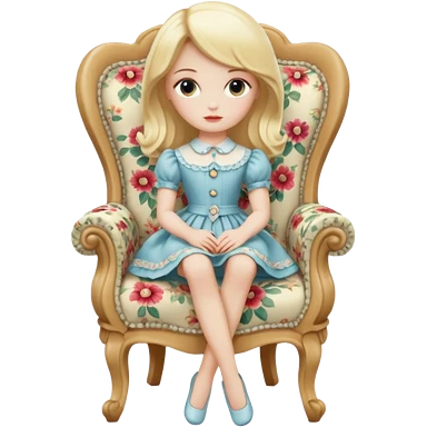 Blonde Doll Sitting On The Chair emoji | AI Emoji Generator