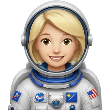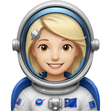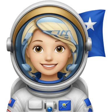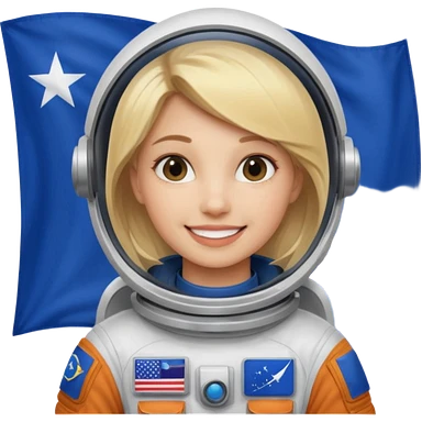 blonde female stronaut holding blue flag emoji | AI Emoji Generator