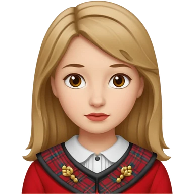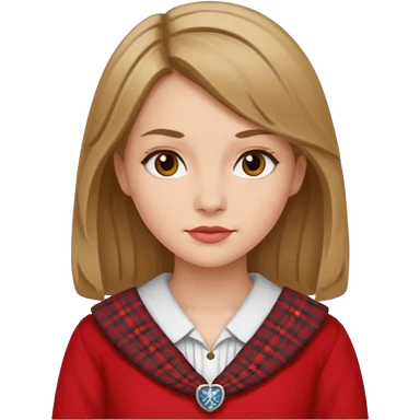 female with scottish red attire and dark blonde hair and blue eyes emoji