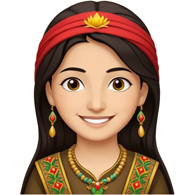 girl emoji in kurdish dress and long brown hair with gold accessories emoji