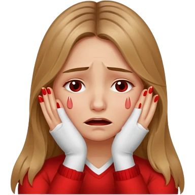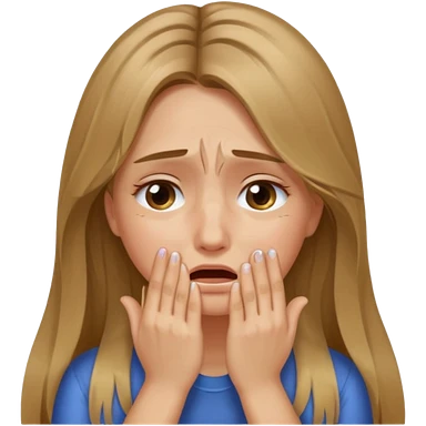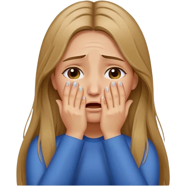 long Bronde hair girl crying with hands covering face and nails long emoji