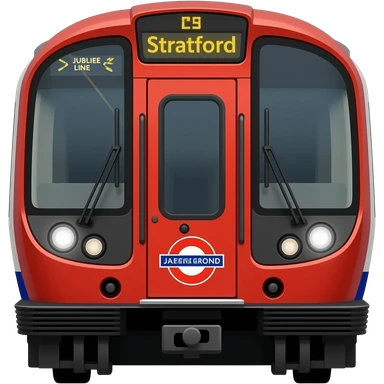 Make a 1996 stock London Underground train with rectangular lights and at the front door mak it say jubilee line and on the board art the top make it say Stratford also make the headlights rectangular emoji