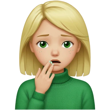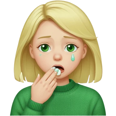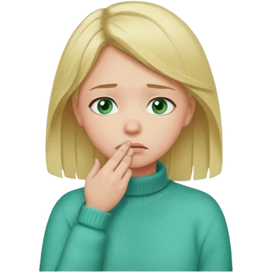 blonde girl in green jumper cough emoji | AI Emoji Generator