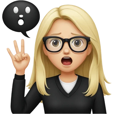 blonde girl with long hair, white glasses, black clothes, shouting bad words emoji