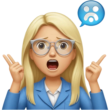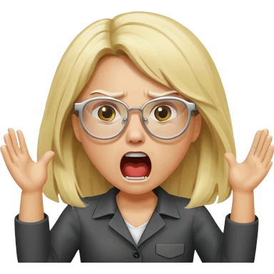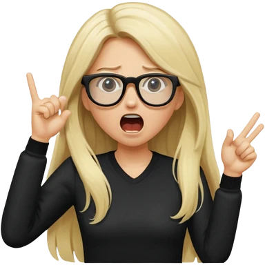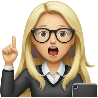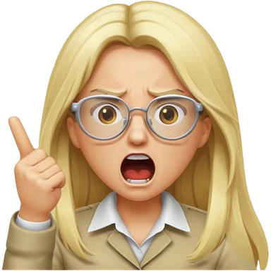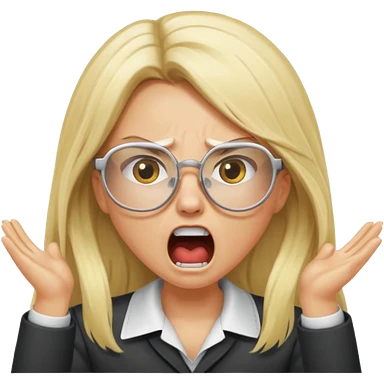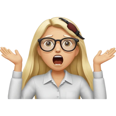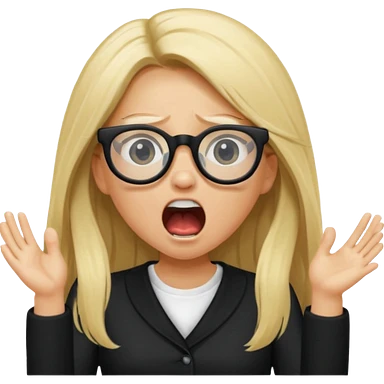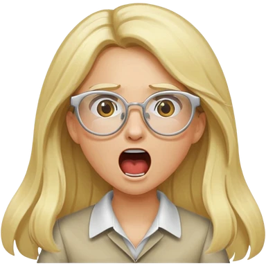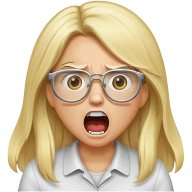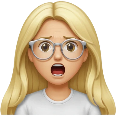 blonde girl with long hair, white glasses, shouting angry emoji