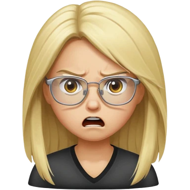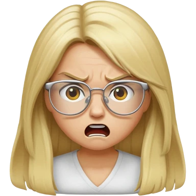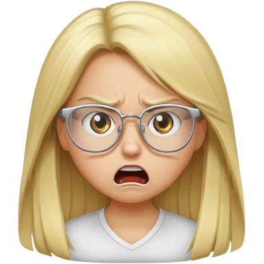 blonde girl with long hair, white glasses, angry emoji