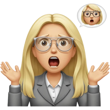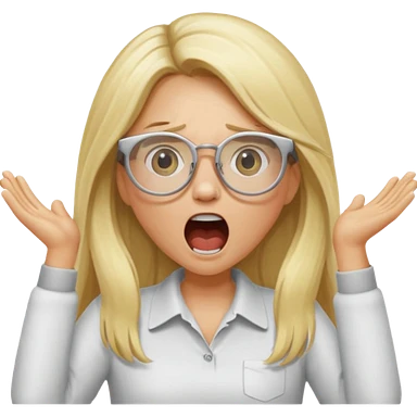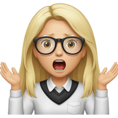 blonde girl with long hair, white glasses, shouting emoji