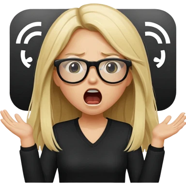 blonde girl with long hair, white glasses, shouting bad words emoji