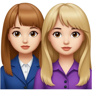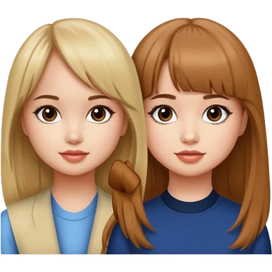 sabrina carpenter kissing a light brown haired girl with bangs and blue eyes emoji