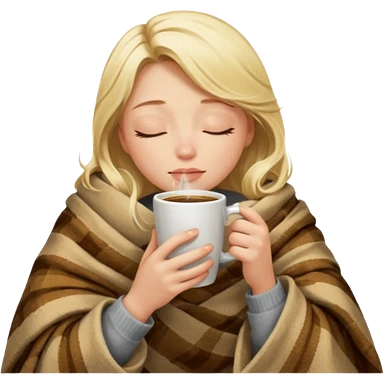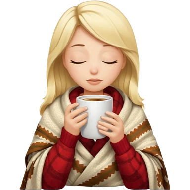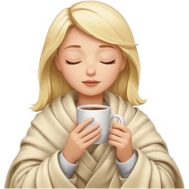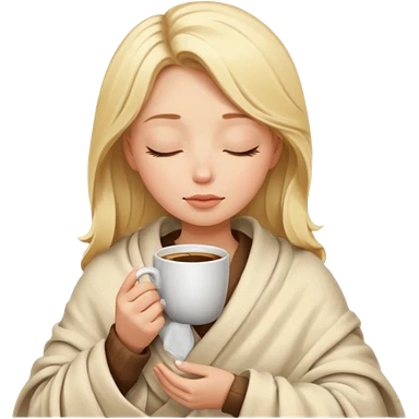 Blonde girl inside a blanket sipping coffee eyes closed emoji