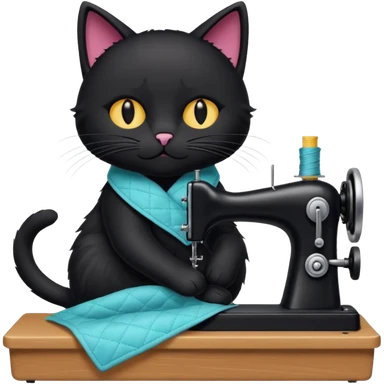 blonde girl with blue eyes working with sewing machine with cat on the floor emoji