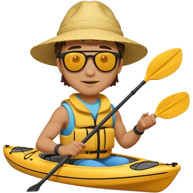 Yellow sea kayak with small male paddler emoji