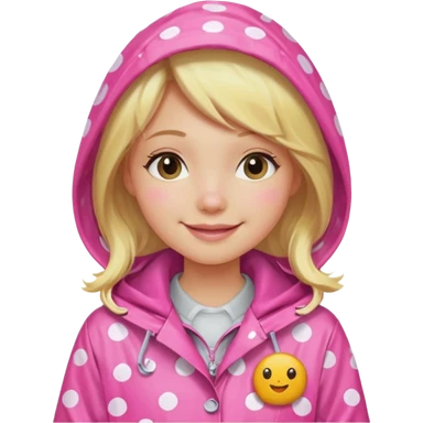 Blonde girl in a pink polka dot raincoat with hoodie emoji