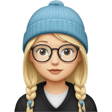 Blonde girl wearing glasses and beanie emoji